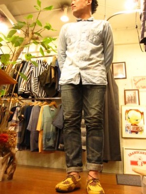 ロールアップしたデニムにマスタードが映えますな〜